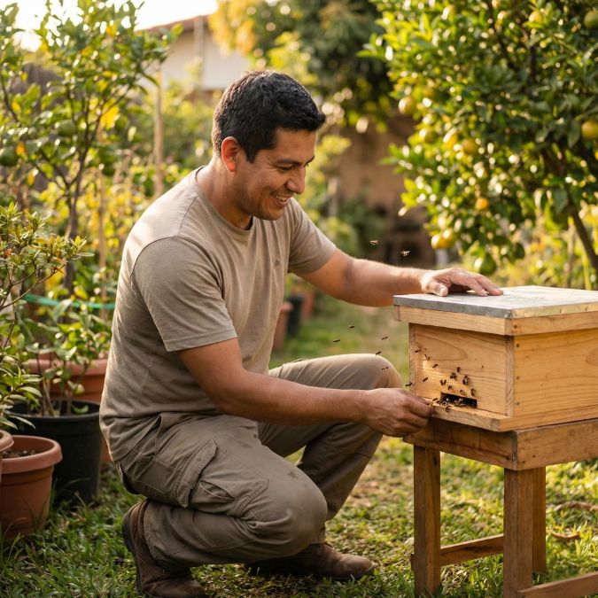 Un proyecto práctico para personas comunes, con espacios despejados pequeños, desde cero y sin experiencia. Eligiendo un modelo sin riesgo de abejas sin aguijón.